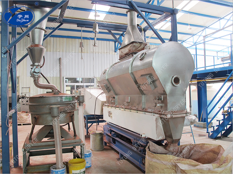 Материал представляет собой сульфат никеля, обладающий сильной кислотностью и коррозионными свойствами. В соответствии с этой особенностью наша компания модернизировала и усовершенствовала производство оборудования. Верхние и нижние корпуса, а также внутренняя поверхностная стенка вибрационного псевдоожиженного слоя полностью прикреплены 3 мм стекловолокна. Вибрационные пластины изготовлены из специальных отверстий для штамповки утки из никелевой пластины, а выбросы выхлопных газов полностью изготовлены из высокотемпературного коррозионно - стойкого стекловолокна. Подкрепления и опорные трубы также специально изготовлены из углеродистой стали PTFE. Для достижения хорошего эффекта выбросов мешки для мешков - пылеуловителей изготовлены из специальных материалов, которые чрезвычайно кислотоустойчивы, и даже контроль частоты вентилятора производится из FRP. Этот процесс эффективно решает проблемы высокой температуры и высокой коррозии, возникающие при сушке материала.